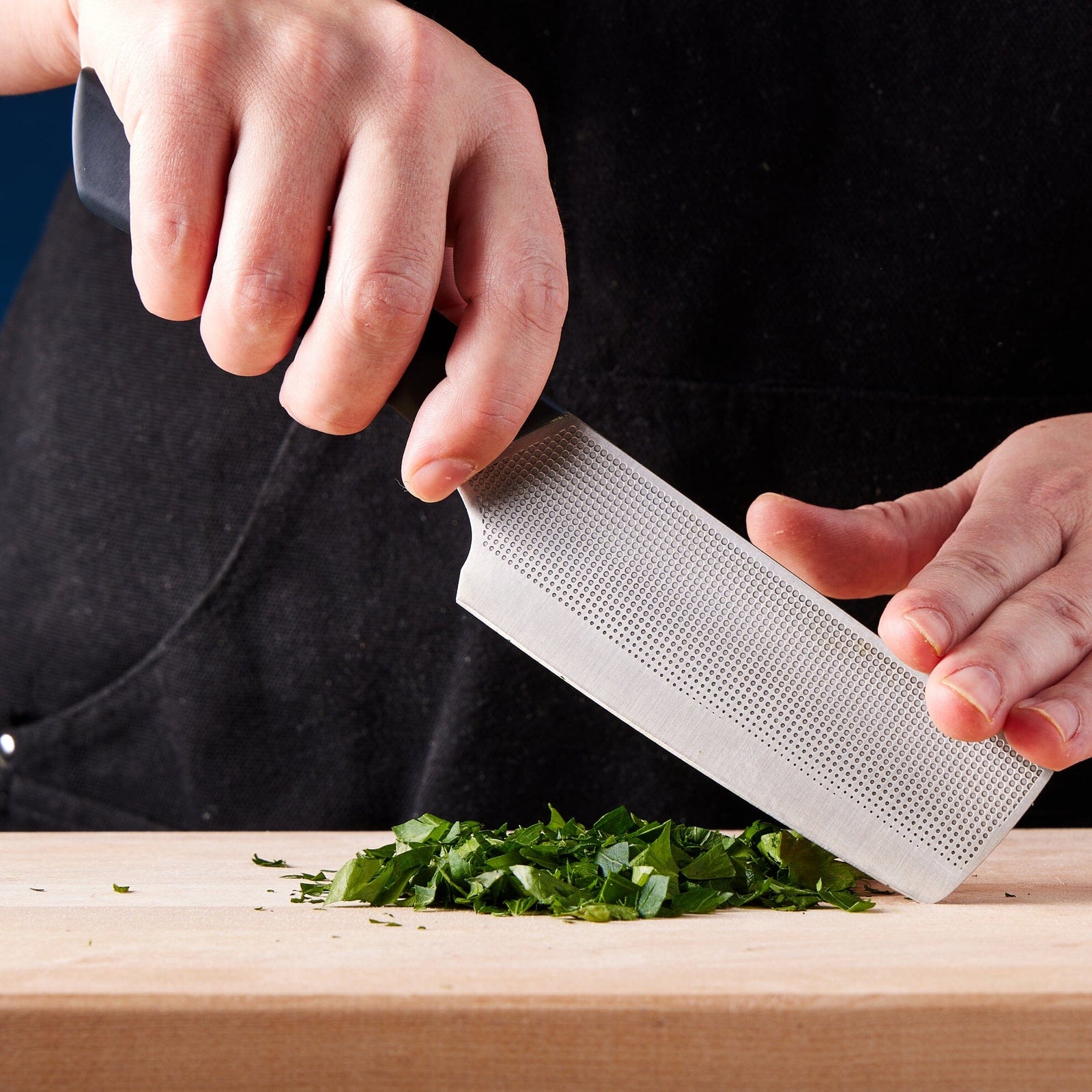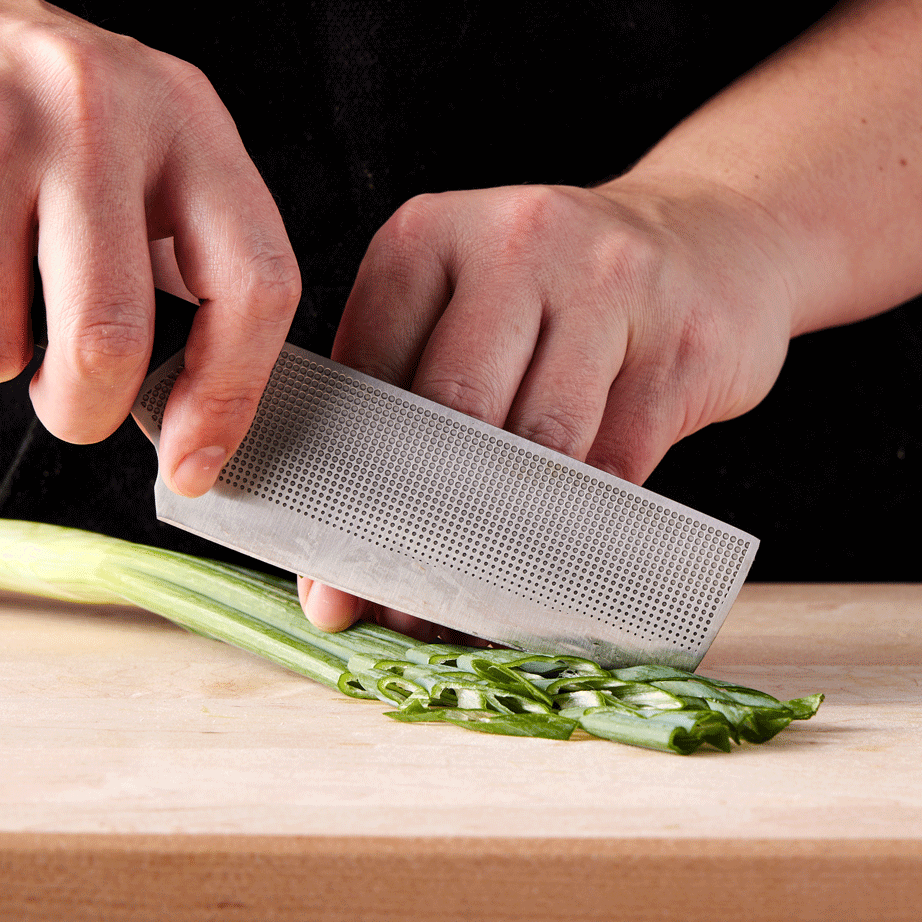Both large and small nakiris have their roles to play for effortless prep. The Small Nakiri excels at the little stuff that can make a big knife feel awkward and even dangerous—slicing garlic into paper-thin slices, mincing shallots or onion into tiny cubes, shaving radishes, slicing mushrooms, shredding fine herbs into a feathery garnish and more.
