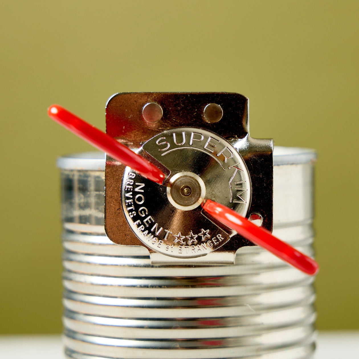 Leave the days of tired wrists and clunky handles behind with the Super Kim, a pocket-sized can opener that packs a punch. Durably built by Nogent (a 100-year-old French cutlery giant), this 3-inch gadget makes quick work of almost any can: Twist the rubberized handles so it locks in place and just start spinning. As it makes its way around the tin’s rim—with just the power of your thumb and index finger—it rounds off the edges, so no sharp bits remain. But our favorite perk is its compact size: the Super Kim fits snugly in any drawer, apron pockets and tote bags for traveling. (And you won’t lose sight of it, thanks to the bright red handles.) Designed for right- or left-handed use.
