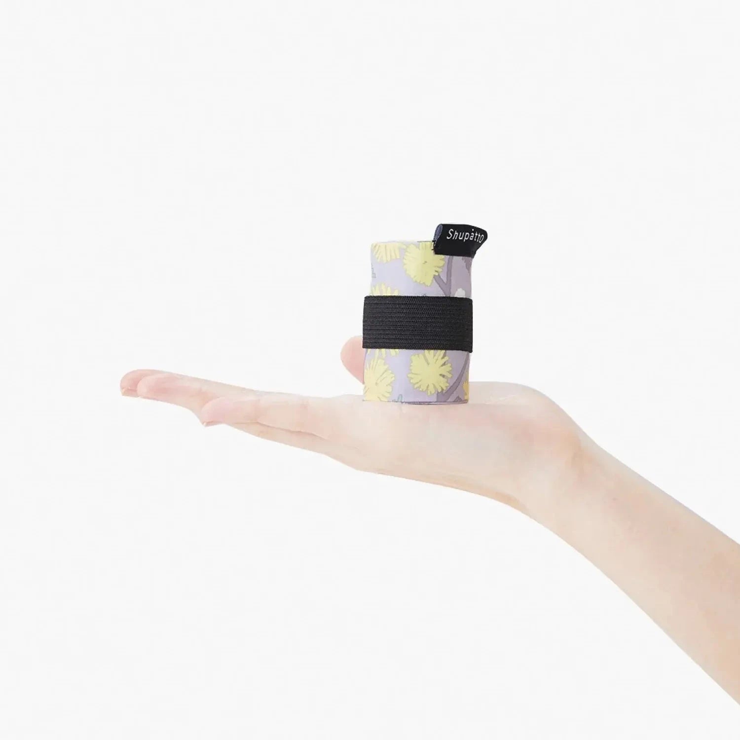 To open, the folded accordion pleats expand into a roomy bag; to quickly close, pull both ends of the bag once until taut pleats form again and roll back into a coil for storage.